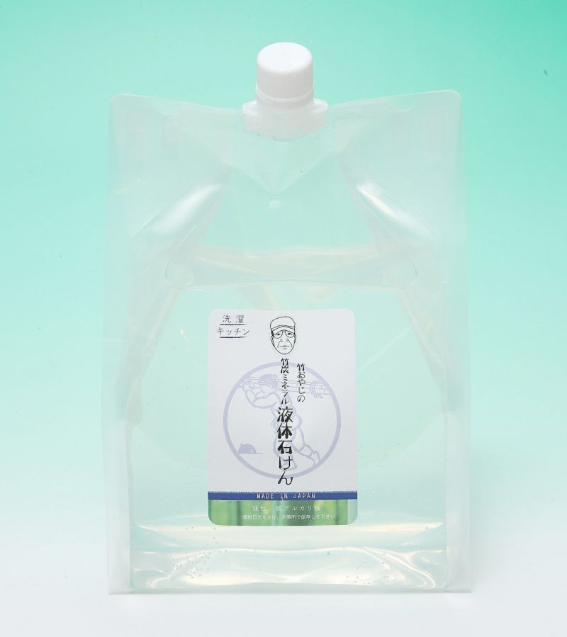 【お得な詰め替え用サイズ】 竹炭ミネラル水を配合した匠の液体石けんです。 衣服の洗濯、食器洗い、キッチン周りの油汚れ、頑固な汚れや、襟・袖口の皮脂汚れに部分洗い用としてもお使いいただけます。 パーム油は使用しておりません。 [原材料]石けん素地(ヤシ油脂肪酸カリウム・大豆油)竹炭ミネラル水・竹炭灰ミネラル水(熊本県産) 一般社団法人経皮毒研究会様・池川クリニック院長 池川明先生にも応援いただいております『竹炭ミネラル水は、100%再生可能な天然資源で出来ています。 界面活性力を持つこの水は、日用品としても様々な用途に使えることでしょう。 また、竹を原料として活用することで、環境問題にも良い効果をもたらします。 「未来の子供達と地球のために」私達は、竹おやじの竹炭ミネラル水普及活動を応援しています。』 私たちの販売する「竹おやじ」の竹炭製品とそのコンセプトに共感いただけ素敵な応援メッセージをいただけました。 応援メッセージにも書いていただきました 「未来の子供達と地球のために」はまさに、「竹おやじ」が思い描く「本物の暮らし」の先にある姿です。 多くの皆様に共感いただけ、一緒に未来について考え実行できたら素敵だと思います。 竹おやじとは 竹炭ミネラル水 竹おやじとは、「熊本から世界へ!」を掲げ、国内外で活躍している匠の炭焼き職人、末廣勝也さんのこと。 炭焼き職人の父の跡を継ぎ、子供の頃から竹炭の生産に携わる。一時中断の後、放置竹林の問題で多くの人びとが困っている状況を知り再開。以降九州竹炭生産振興会の会長を歴任。 炭焼き窯造りと炭焼き技術において、日本の匠十人に選ばれる。その卓越した炭焼きの技術を、ボランティアで、中国・ネパール・ミャンマーなどに自ら赴き伝授する。 2021年、木竹炭の活用を広めるため「日本炭焼き学校」を設立。現在、日本古来の炭焼き技術を継承するため入学者に無償で指導している。 2022年7月、里山や森林保護に活用するためドローンの操縦資格試験に挑んで見事合格! 竹炭ミネラル液体石けんの概要 竹おやじの竹炭ミネラル液体石けん(無香料)は、ヤシ油、大豆油を原料としたカリ石けん素地(ヤシ油脂肪酸カリウム)に、竹おやじの竹炭ミネラル水を配合した手肌にもやさしい無添加液体石けん。 竹炭ミネラル水と石けん(ココナッツ石けん)のダブル効果で汚れを落とします。竹炭ミネラル水だけでも洗浄力はありますが、石けんを加えたことでより高い洗浄力が期待できます。 キッチン用に使うと、石けんとは思えないほど油汚れも良く落とせます。洗濯に使うと、生地を傷めず柔軟剤不要でもふんわりと仕上がります。いずれも合成洗剤とそん色なし。 食器洗い、キッチン周りの油汚れ、衣服の洗濯、襟・袖口の皮脂汚れや頑固な汚れの部分洗い用にお使い頂けます。 竹炭の製造者は、「熊本から世界へ!」を掲げ、国内外で活躍している炭焼きの名人「竹おやじ」こと末廣勝也さん。 使うメリット 「雨後の筍(たけのこ)」と言われるように、所狭しと出てくる筍。地下茎の伸長や成長スピードがとても速いので、竹林が森を浸食することで森林バランスが崩れ、里山の崩壊を招きかねない状況にもなっているエリアもあります。熊本の放置竹林の竹を伐採し、資源として有効活用することで森林保護にもつなげます。 ● 熊本の放置竹林の竹使用。竹の有効活用により、使うほどに森林保護につながります。 ● キッチン、洗濯、お掃除、浴槽やトイレほか、色々な洗浄に使えて便利。 ● キッチン用に使った場合、マイルドな泡立ちで油汚れも良く落とせます。 ● 合成洗剤とそん色ないお洗濯が可能。 ● 原料は「竹炭ミネラル水、竹炭灰ミネラル水、純石けん」。 環境にもヒトにもやさしくサスティナブル。 ● 竹炭ミネラルが、浄化槽のバクテリアを活かし、河川と海の浄化にも寄与します。 ● 排水による河川の汚染が少なく環境負荷を抑えます。24時間で生分解します。 ● 化学成分ゼロ。化学添加剤・柔軟剤・漂白剤・蛍光増白剤不使用。 ● 泡立ち控えめなのですすぎは1回でOK。節水・節電になります。 ● 生地を傷めず、柔軟剤不要でふんわりの仕上がりになります。 ● 洗濯物の臭いを緩和し、洗濯槽やホースのヌルヌル・悪臭・黒カビの発生を抑えます。 ● 雨の日の部屋干しでも生乾きのいやな臭いを発生させません。 ● 洗濯物への残留物なし。赤ちゃんやデリケート肌の方にも安心。 ● 「無臭」です。人工香料が嫌いな方も安心。 竹炭ミネラル液体石けん(無香料) このような方に一押し! 使用方法 竹炭ミネラル液体石けん(無香料) スポンジ等に本液を適量プッシュしてご使用ください。ほどよい泡立ちなのですすぎが簡単。節水にも貢献。台所洗剤としてだけでなく、レンジまわりの油汚れ、食洗機にも使えます。 アドバイス ひどい油汚れがある場合には、あらかじめ新聞やキッチンペーパーで油をよくふき取り、それからスポンジに水を含ませて