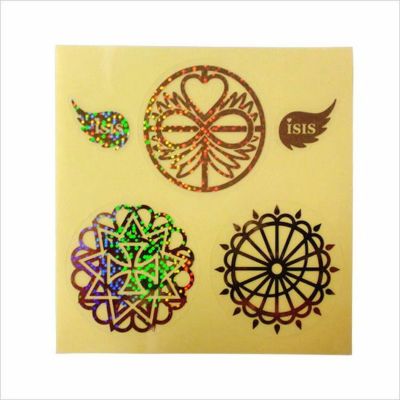 気になっていた宇宙イシスのシンボルシール。角度によってレインボー、実物はどちらかと云うとゴールドなところが余計気に入りました。購入してしばらく経つのに何かに貼るのが勿体なくて寝室のベットの横の棚に置いています。パワフルでキラキラしてとてもきれいです。